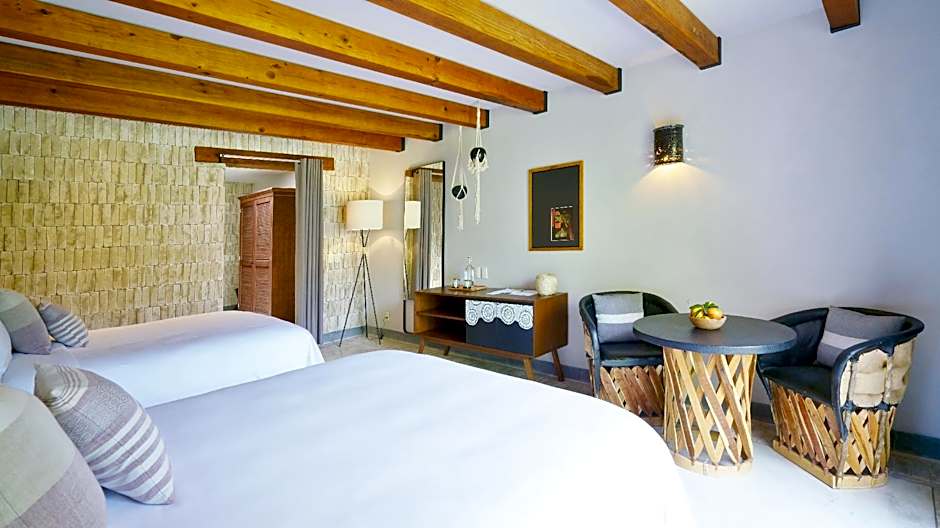 PREMIUM 2 QUEEN SIZE WITH PATIO is 431 square feet and includes 2 queen-size beds 150-154 width plus terrace, desk, hairdryer, ironing set, and slippers.
